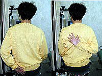 この患者さんは肩から腕にかけての痛みを訴えていました。また、左腕が痛みのためほとんど動かせないような状態でした。検査の結果、左側の肩甲骨がズレていることがわかりました。